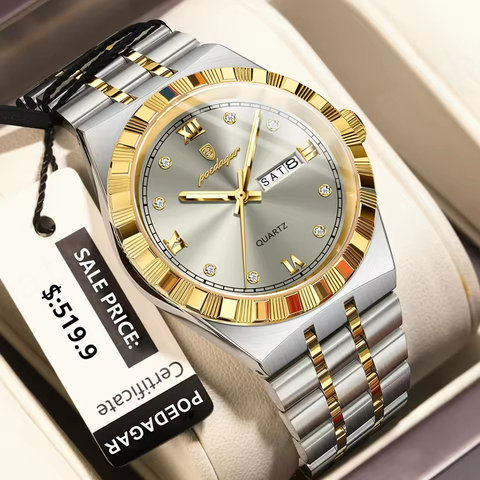 896 원래 럭셔리 쿼츠 시계 남성 방수 빛나는 스테인레스 스틸 스트랩 남성 시계